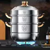[Qianbaidu] 316不鏽鋼蒸鍋 2/3/4層大容量蒸煮燉湯鍋 廚房多層蒸籠食品級電磁爐煤氣灶通用 可視玻璃蓋
