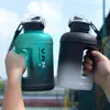 [Qianbaidu] 大容量運動水壺 高顔值噸噸桶帶吸管水壺 食品級耐高溫塑料大肚杯 戶外健身帶刻度提把一鍵彈蓋水瓶